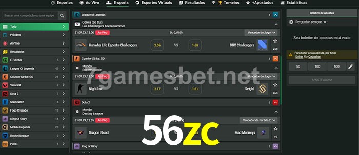 O 56zc oferece uma grande seleção de opções de apostas em e-sports com probabilidades competitivas